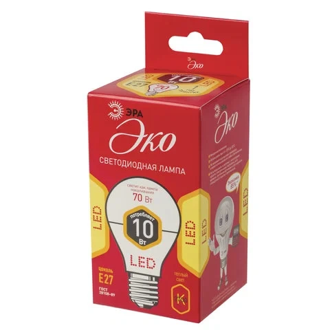 Лампа светодиодная Эра Эконом 10Вт, E27, 2700К, теплый белый свет, груша