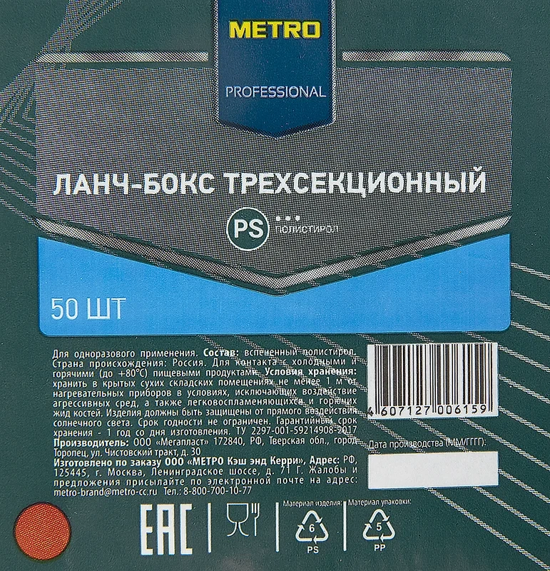 METRO PROFESSIONAL Ланч-бокс 3 секции, 50 шт. – это практичные и легкие емкости для фасовки, упаковки и доставки горячих и холодных блюд. Замок отвечает за плотность прилегания верхней и нижней частей, поэтому все будет надежно закрыто. Наличие 3 секций позволяет упаковать в него сразу несколько разных продуктов, при этом они не перемешаются. Емкость сделана из вспененного пенополистирола, поэтому пищу можно разогревать в микроволновке или замораживать в морозилке прямо в ней. Материал полностью безопасен для здоровья, так как не вступает в реакции при контакте с продуктами питания. Он не пропускает влагу, поэтому блюда останутся в первоначальном виде и не испортятся. К тому же длительное время будут сохранять изначальную температуру. Еще одним преимуществом является легкий вес, что удобно как для конечных потребителей заказанных блюд, так и производителей. Одноразовый ланч-бокс чаще всего используется в сфере общепита, поскольку гарантирует сохранение аромата и вкуса пищи.