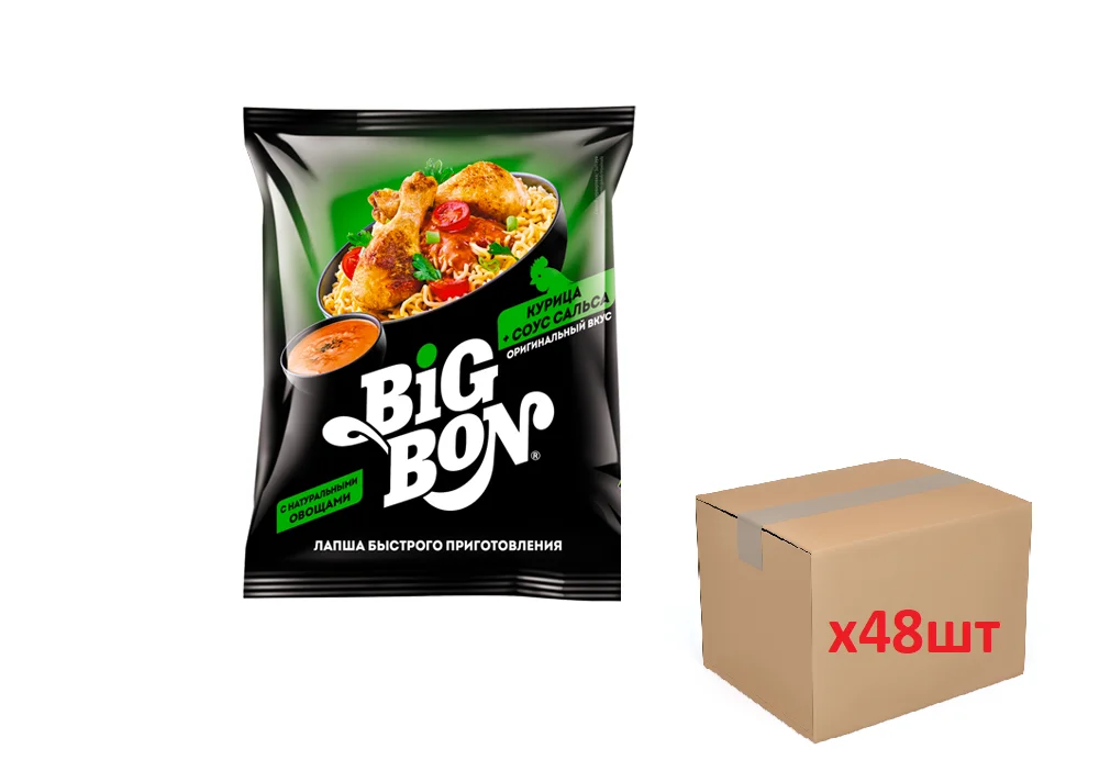 Лапша быстрого приготовления Big Bon Курица + соус Сальса, 75г x 48 шт