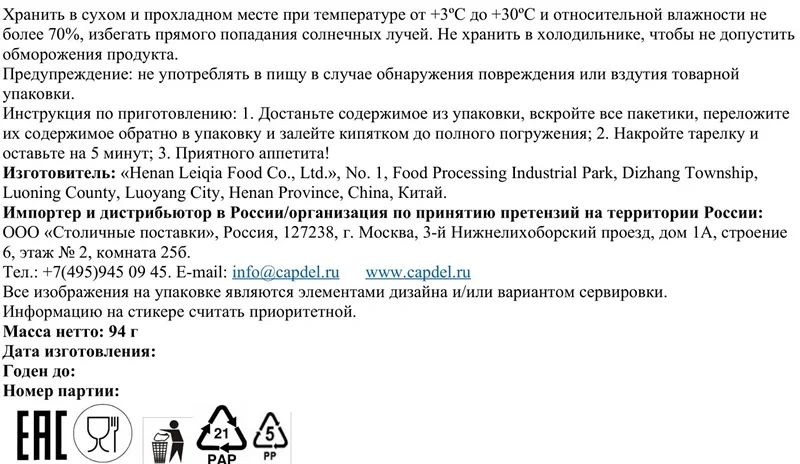 | Тип | лапша быстрого приготовления |