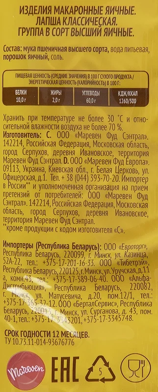 | Тип | макаронные изделия |