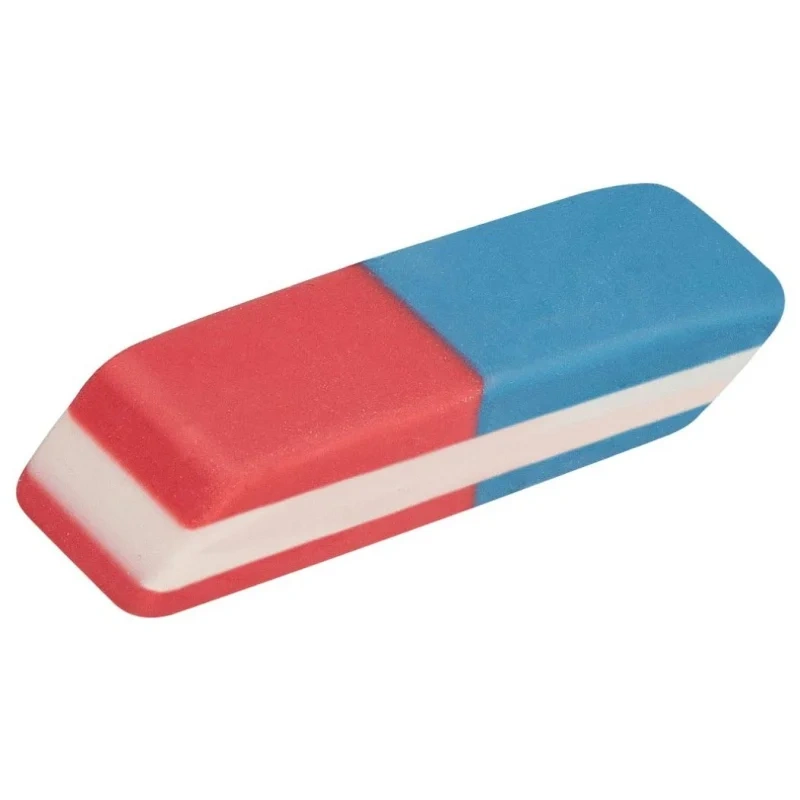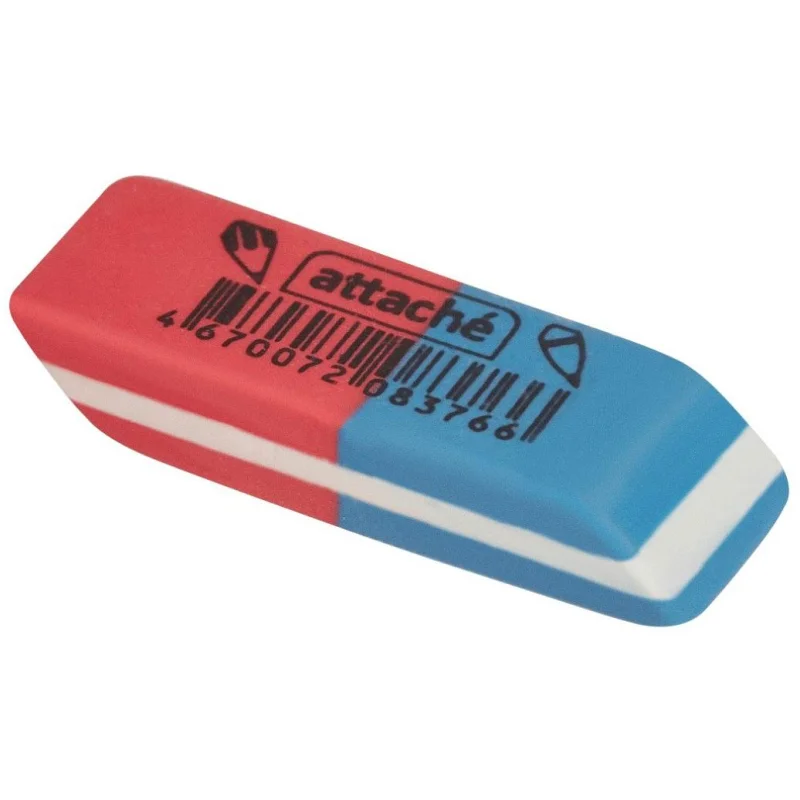 Ластик Attache 42x14x8 мм комбинированный для карандашей и ручек Комбинированный ластик Attache скошенной формы выполнен из термопластичного каучука. Половина красного цвета предназначена для удаления карандашных надписей, половина синего цвета выполнена с повышенным содержанием абразивных частиц и подходит для стирания надписей, сделанных ручкой. Размер ластика: 42x14x8 мм.