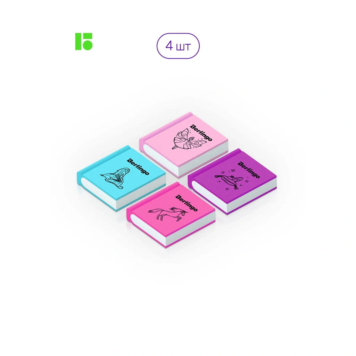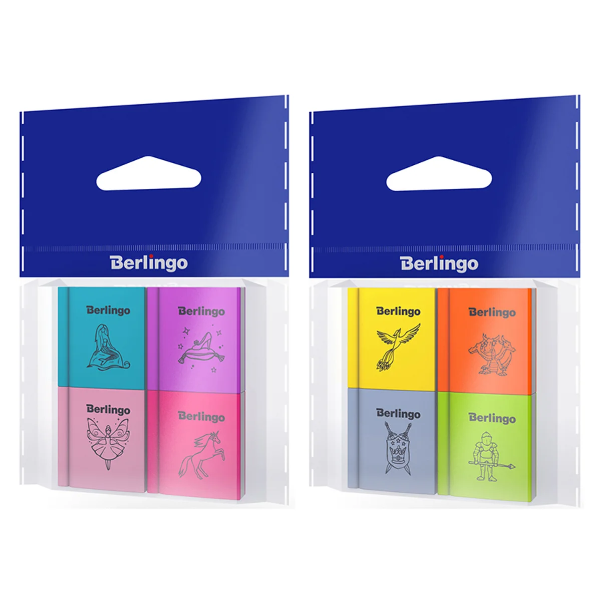 Ластик Berlingo 'Fairy Tales', 4шт., термопластичная резина, 28*25*7мм, пакет с европодвесом