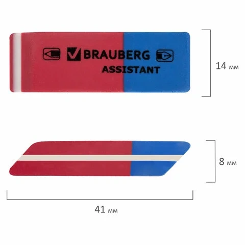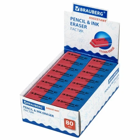 Ластик Brauberg Assistant 80 41х14х8мм, красно-синий
