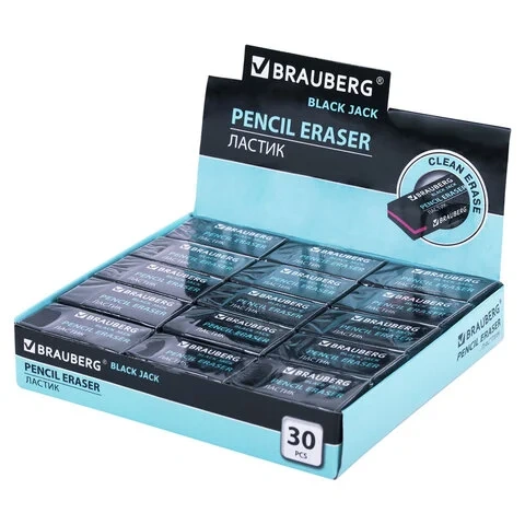 Пиши, стирай! Ластик BRAUBERG 'BlackJack'обеспечит лёгкое и чистое стирание без повреждения поверхности бумаги и без образования бумажной пыли. Приобрести можно в нашем интернет-магазине.