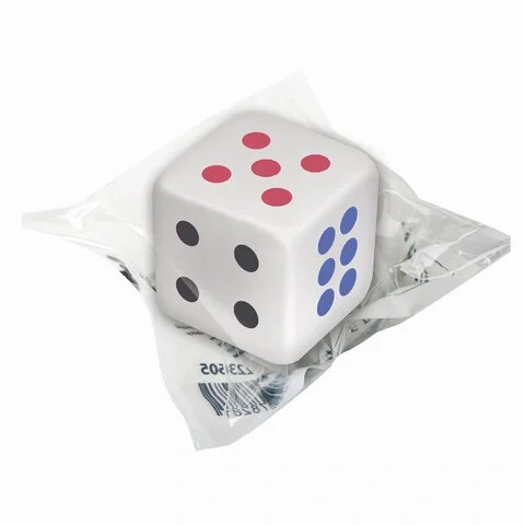 Оригинальный ластик в форме игрального кубика. Поставляется в белом цвете с нанесением рисунка под кубик яркими цветами. Может использоваться не только в работе, но и для игры. Размер - 24х24х24 мм.