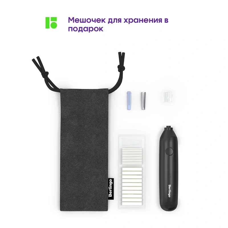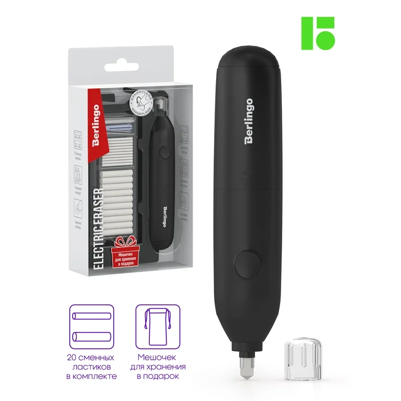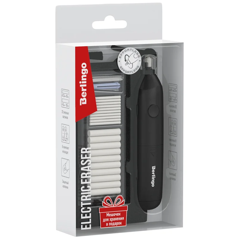Ластик электрический Berlingo “Eraze”, в комплекте 20 сменных ластиков, мешочек для хранения, PVC бо