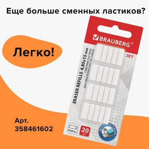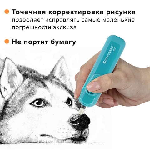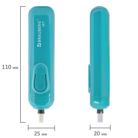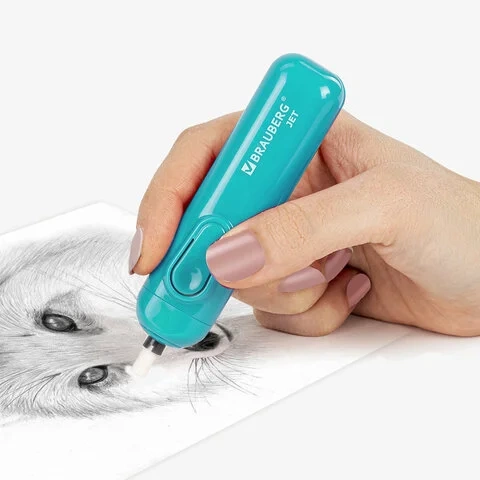 Ластик электрический BRAUBERG 'JET', питание от 2 батареек ААА, 8 сменных ластиков, голубой, 229612