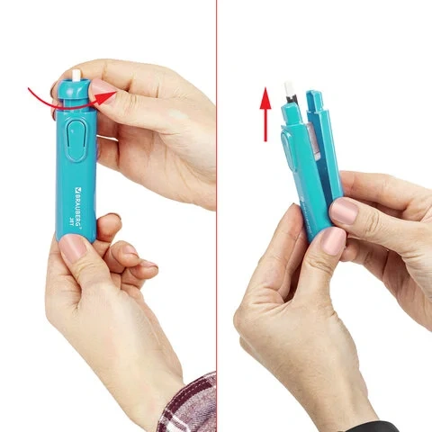 Электрический ластик работает от 2 батареек ААА (в комплект не входят). При помощи мощного внутреннего мотора насадка-ластик приходит в движение и позволяет очень точно корректировать эскиз или чертеж, создавать блики на карандашных рисунках. В комплект входят 8 дополнительных ластиков-насадок размером 4,85х15 мм. Цвет корпуса - голубой. Упаковка - блистер с подвесом.