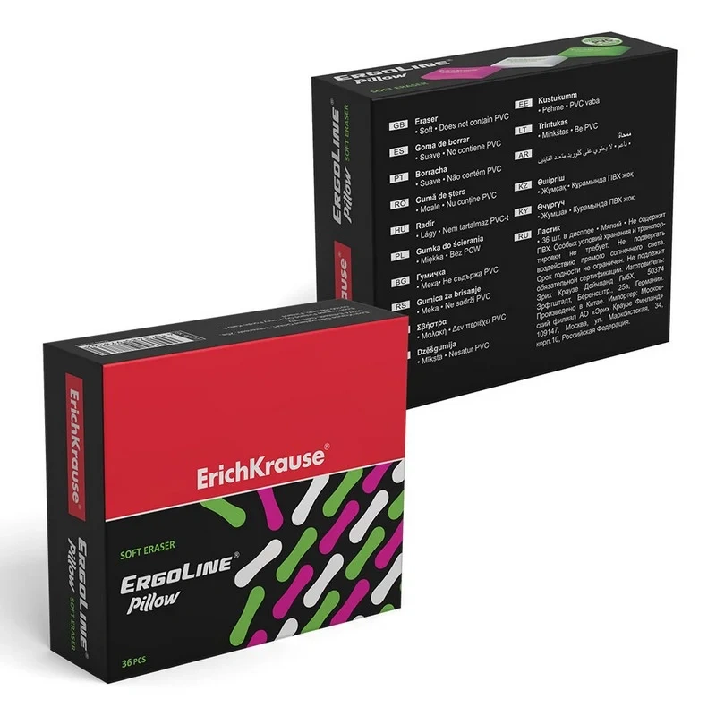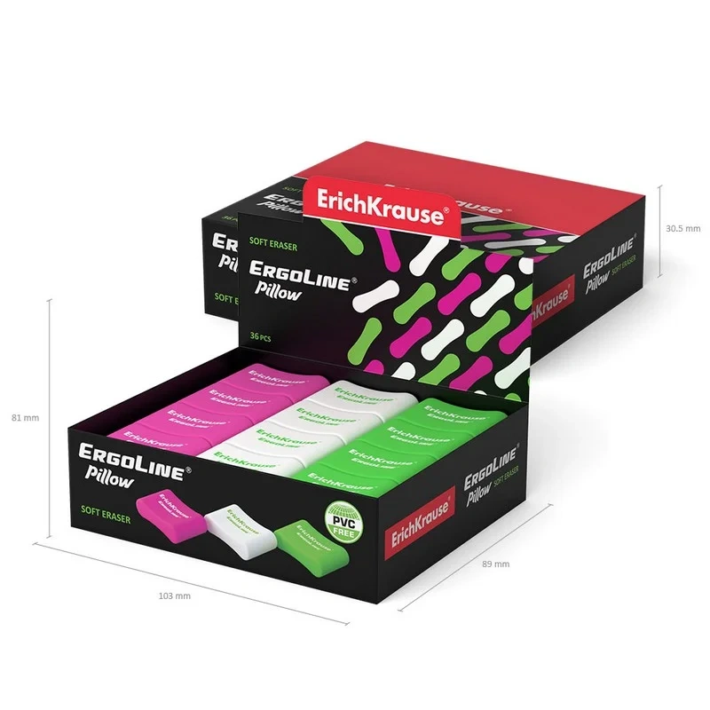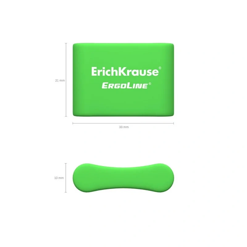 Мягкий ластик эргономичной формы из современного, экологически чистого и гипоаллергенного материала термопластичной резины (TPR) с пониженным образованием крошек (Dust free) выполнен в белом и ярких неоновых цветах. Размер 33ммх21ммх8мм. Не содержит ПВХ.