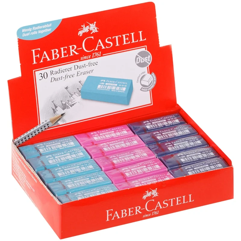 Ластик Faber-Castell 'Dust Free', прямоугольный, в пленке, бирюзовый/розовый/синий, 11*18*41мм