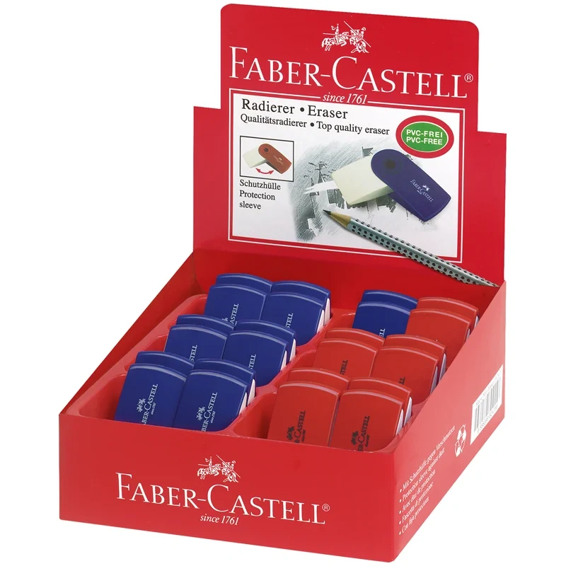 Ластик Faber-Castell 'Sleeve Mini', прямоугольный, 54*25*13мм, красный/синий пластиковый футляр
