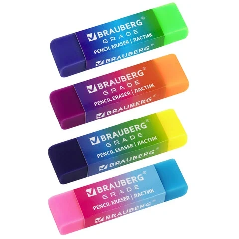 Ластик хорошо лежит в руке, не оставляет на бумаге грязных следов и не пачкается. Цвет комбинированный: белый с серым.