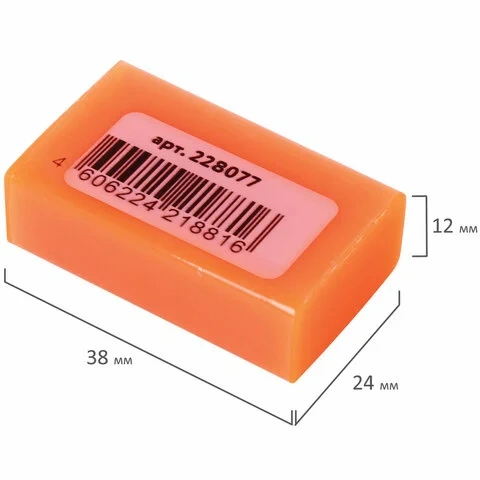 Предназначен для удаления надписей и рисунков, сделанных чернографитными карандашами. Изготовлен из безопасного материала ЭКО-ПВХ. Имеет прямоугольную форму, выполнен в ярких неоновых цветах, которые обязательно порадуют ребенка. Поставляется в нескольких вариантах цвета (без возможности выбора). Размер 38х24х12 мм.