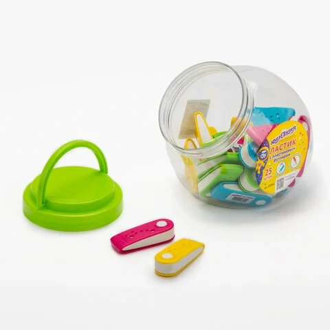 Имеет эргономичную форму, и пластиковый футляр в ярких цветах ассорти. Размер - 57х22х14мм. Поставляется в пластиковой банке.