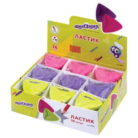 Имеет эргономичную форму, поставляется в трех ярких цветах ассорти. Размер - 52х50х15 мм. Единица товара упакована в ОПП пакет. Поставляется в картонном дисплее.
