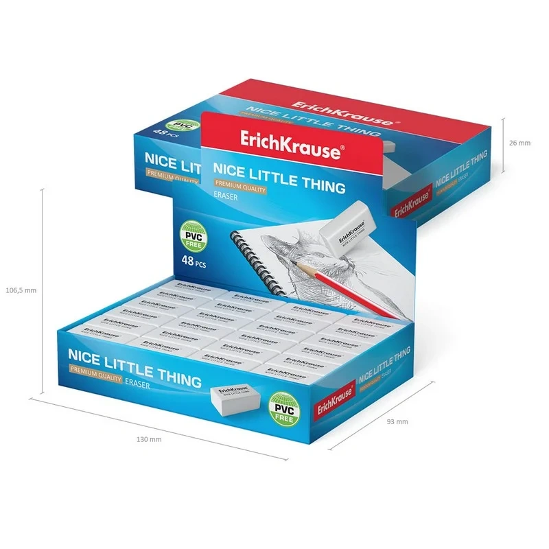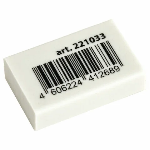Мягкий ластик белого цвета выполнен в классической прямоугольной форме, сделан из натурального каучу...