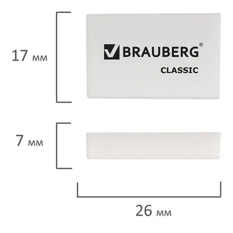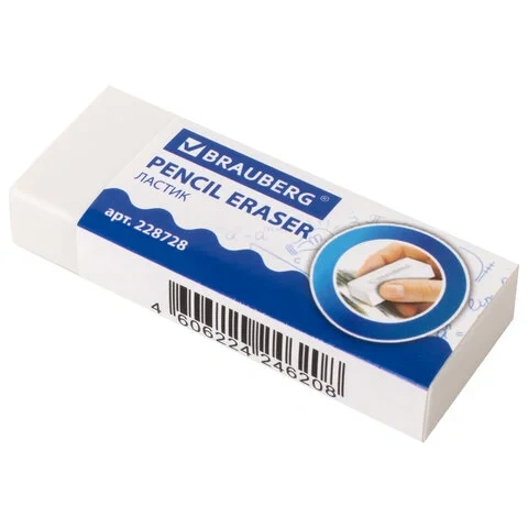 Ластик Brauberg 26х17х7мм, белый, 221033