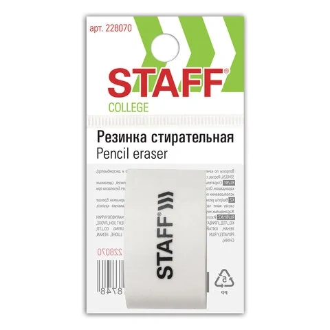 Ластик STAFF 'College', 38х22х16 мм, в форме капли, цвет белый, 228070