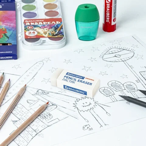 Ластик сделан из натурального каучука и обеспечит лёгкое и чистое стирание без повреждения поверхнос...