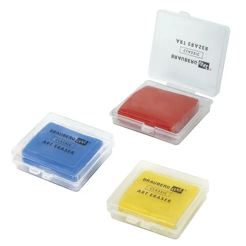 Ластик-клячка художественный цвета ассорти, в футляре, 40x36x10 мм, BRAUBERG ART 'CLASSIC', 271155