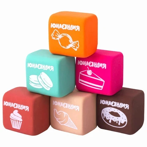 Набор ластиков ЮНЛАНДИЯ 'СЛАДКИЕ ИСТОРИИ' 6 шт., размер 21х21х16 мм, ароматизированные, 229584,