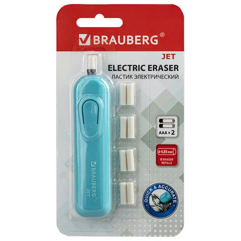 Ластик электрический BRAUBERG 'JET', питание от 2 батареек ААА, 8 сменных ластиков, голубой, 229612