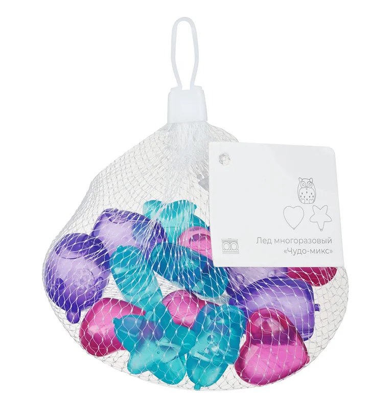 Многоразовый лед Vetta Чудо-микс - это набор форм для льда причудливой формы для многократного использования. Цветные формочки эффективно охлаждают, при этом не разбавляют напиток и не изменяют его вкус. Перед использованием их просто нужно положить в морозильную камеру. Эффектно смотрятся в прозрачном кувшине или стакане. 15 штук в наборе.