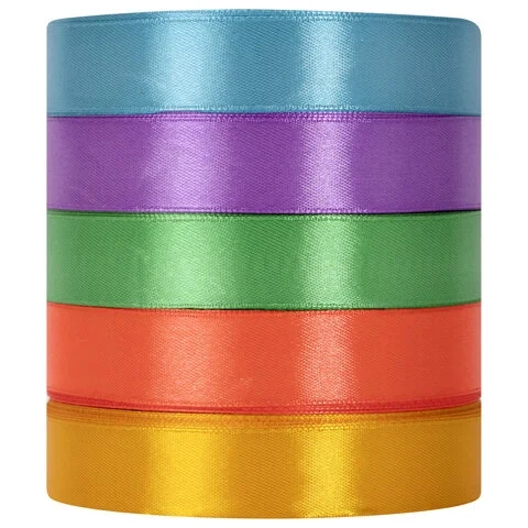 Лента атласная ширина 20 мм, набор 5 цветов по 23 м, BRAUBERG, 591504