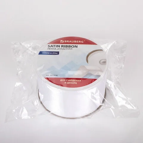 Лента атласная ширина 50 мм, длина 23 м, белая, BRAUBERG, 591519