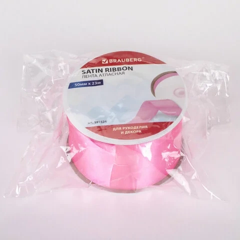 Лента атласная ширина 50 мм, длина 23 м, розовая, BRAUBERG, 591524