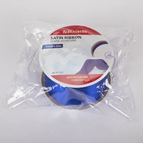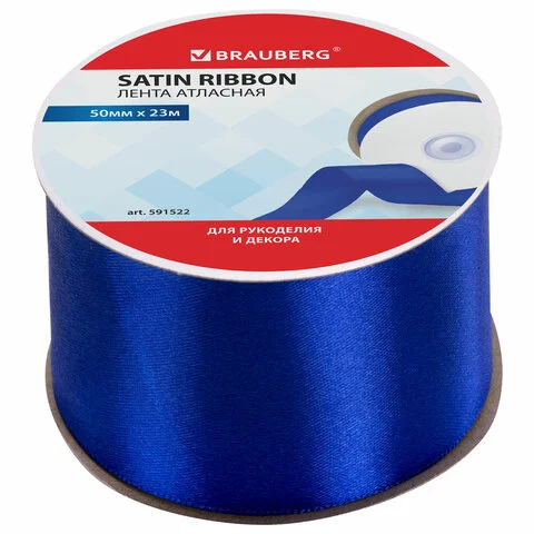 Лента атласная ширина 50 мм, длина 23 м, синяя, BRAUBERG, 591522