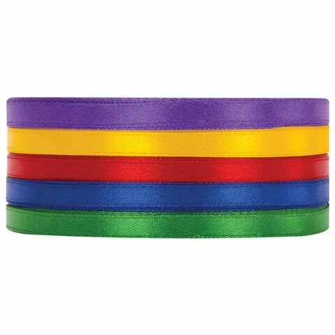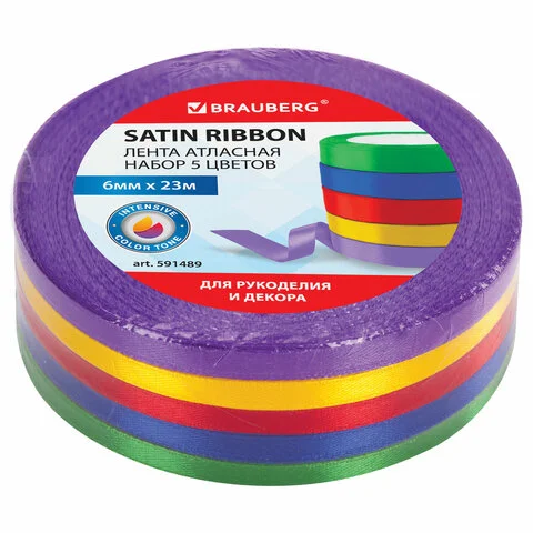 Лента атласная ширина 6 мм, ИНТЕНСИВ набор 5 цветов по 23 м, BRAUBERG, 591489