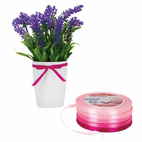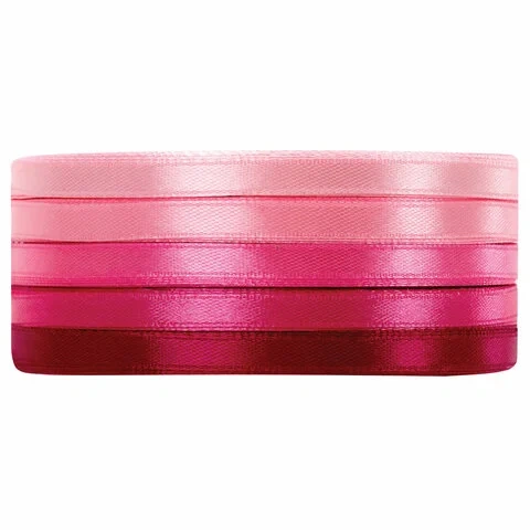 Лента атласная ширина 6 мм, РОЗОВЫЙ СПЕКТР набор 5 цветов по 23 м, BRAUBERG, 591491