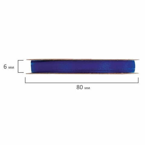 Изделие представляет собой набор из 4 атласных лент синего цвета, изготовленных из 100% полиэстера с ткаными кромками на обоих краях. Кромка на краях лент выполнена с применением полиэстеровой нити. Изготовлены с применением саржевого способа переплетения нитей. Каждая из 4-х лент шириной 6 мм (± 3%), плотностью 0,77 г/м2 и длиной 25 м намотана на картонный рулон с пластиковой втулкой. Комплект упакован в прозрачный полипропиленовый пакет с застежкой, содержащий этикетку с краткой информацией о товаре.