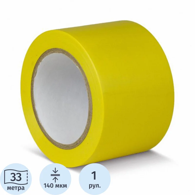 Лента для разметки жёлтого цвета на основе ПВХ. Клеевой слой на основе каучука. Ширина ленты — 75 мм, длина намотки 33 погонных метров. Служит для нанесения разметки, обеспечения безопасности, указания направления движения, места остановки, ограничения движения, а также для обозначения подъездных путей. Хорошо приклеивается, устойчива к сколам, порезам, разрывам. Толщина носителя: 0.1-0.11 мм. Общая толщина: 0.13-0.14 мм. Удлинение при разрыве: 140-170%. Рабочий диапазон температур: от –5 до 70 градусов Цельсия.