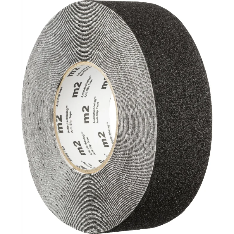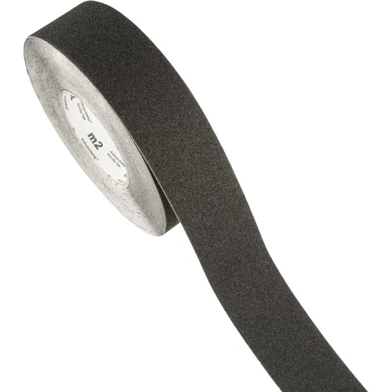 Лента противоскользящая Мельхозе 50 мм х 18.3 м чёрная. Применяется для гладких поверхностей. Противоскользящее покрытие с зерном из оксида алюминия, основа из ПВХ, самоклеящаяся сторона с защитной лентой для защиты клеевого слоя, акриловый клеевой слой, толщина без защитной пленки <1 мм.