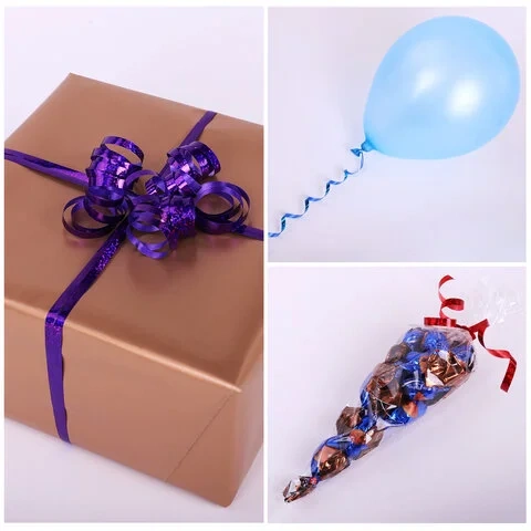 Набор состоит из 6-ти лент шириной 5 мм и длиной 10 м каждая. Ленты изготовлены из прочного полипропилена (70%), полиэтилена (15%) и полиэтилентерефталата (15%). Толщина лент 130 мкм (0,13 мм). Ленты представлены в шести цветах с голографическим эффектом: золотистый, серебристый, красный, зеленый, синий, фиолетовый. Ленты упакованы в прозрачный пакет с картонным подвесом, на обратной стороне которого представлена краткая информация о товаре.
