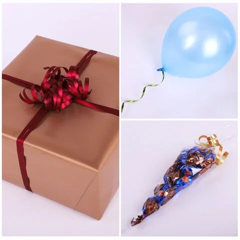 Лента упаковочная декоративная для подарков, матовый металл, 6 шт., 5 мм х 10 м, цвета ассорти, ЗОЛО