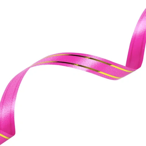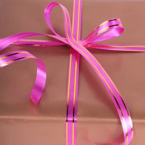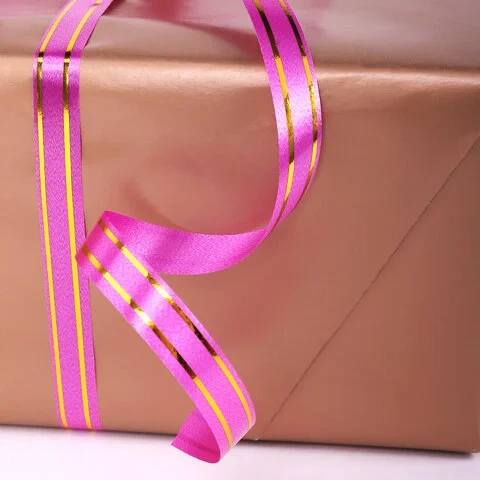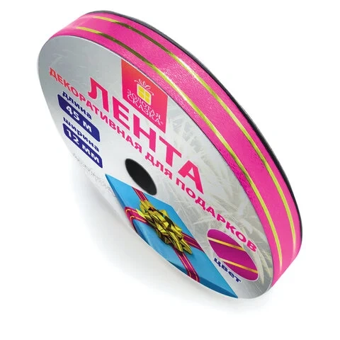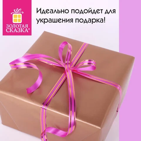 Лента упаковочная декоративная для подарков, золотые полосы, 12 мм х 45 м, розовая, ЗОЛОТАЯ СКАЗКА,