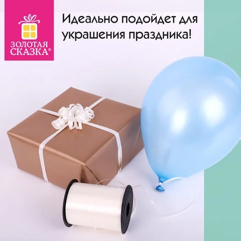 Лента упаковочная декоративная для шаров и подарков, 5 мм х 500 м, бежевая, ЗОЛОТАЯ СКАЗКА, 591814