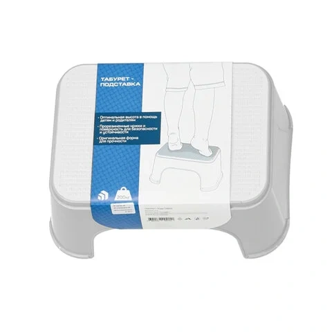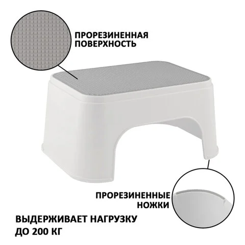 Стремянка-табурет-подставка 1 ступень, пластиковая, 16х34х26 см, нагрузка 200 кг, цвет серый, 434150