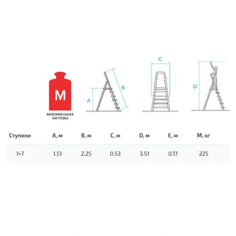 Лестница-стремянка Новая Высота 7 ступеней, до 150кг, алюминиевая