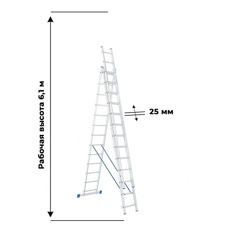Лестница Новая Высота 3 секции, 4.5м, до 150кг, алюминий