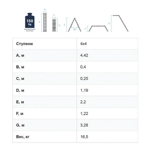 Лестница-стремянка Новая Высота 4х4 ступеней, h=4.52м, до 150кг