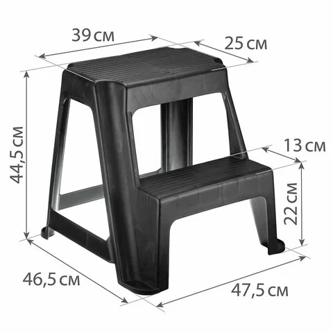 Тумба-стремянка Idea 2 ступени, 48х47х41см, черная, пластиковая