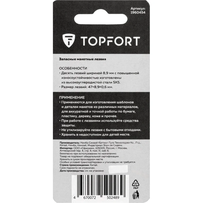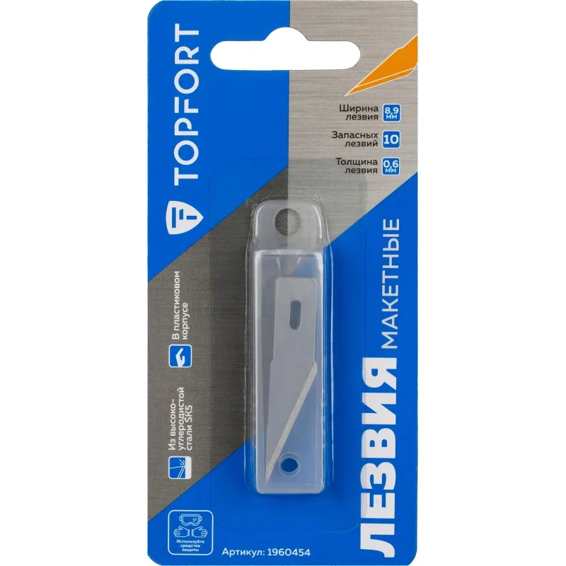 Лезвие сменное для художественного ножа Topfort SX03T-10 стальное 8.9 мм специальное (10 штук в упаковке)