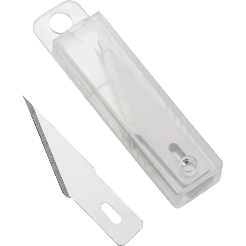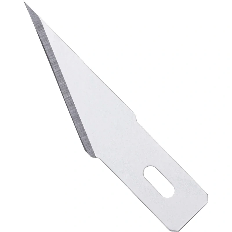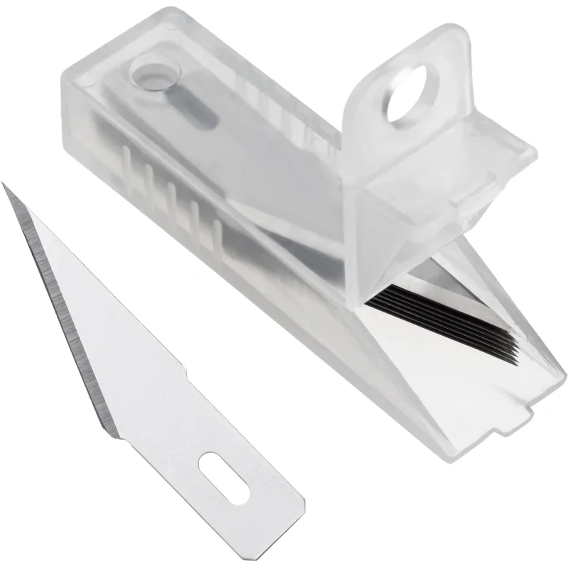 Лезвия предназначены для художественных ножей и используются при изготовлении макетов, шаблонов и мелких деталей. Они выполнены из прочной высокоуглеродистой стали SK5, отличающейся высокой износоустойчивостью и долговечностью, что обеспечивает чистый и точный рез при работе с бумагой, пластиком, деревом и кожей.
