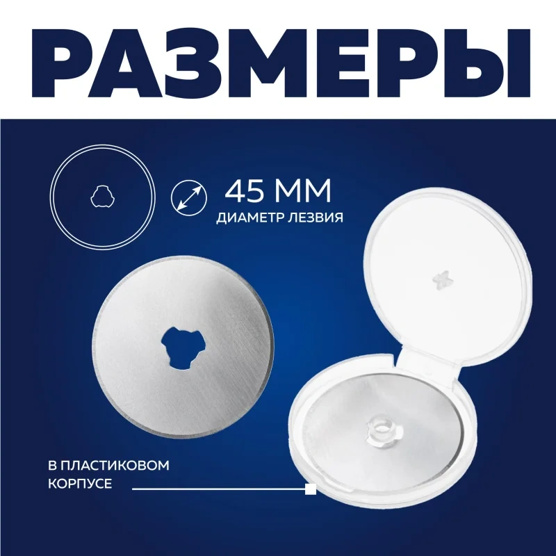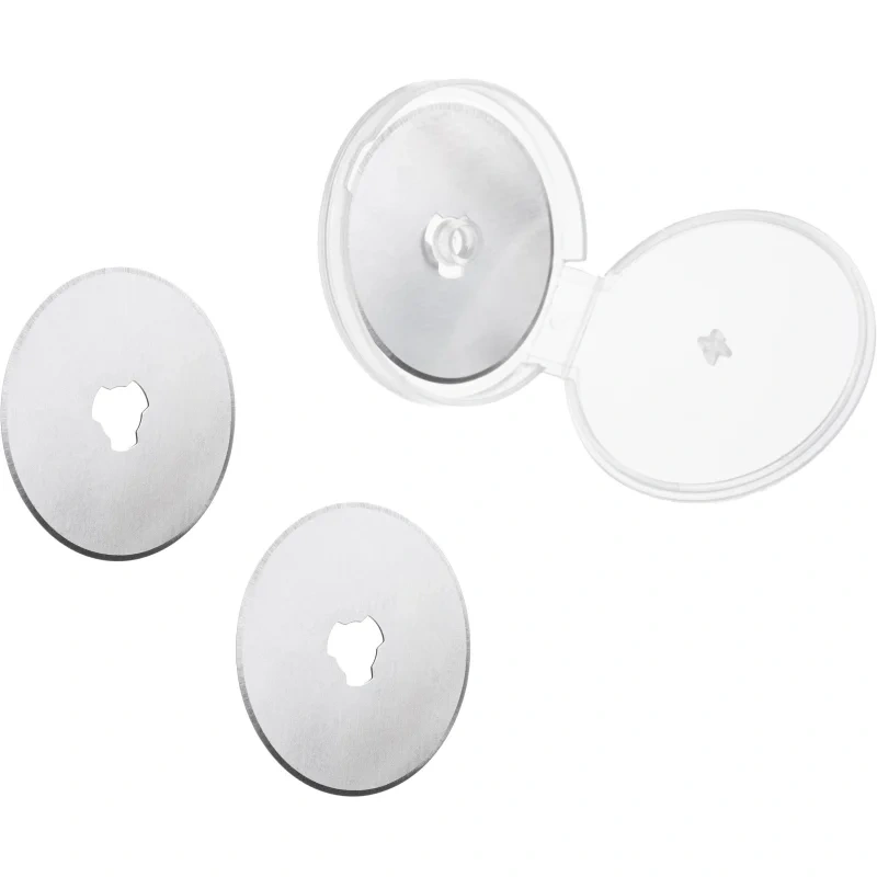 Дисковая форма диаметром 45 мм и толщиной 0.3 мм гарантирует плавное вращение и ровный рез без заусенцев. Несегментированная конструкция делает лезвия прочными и безопасными в использовании. В комплект входит 3 лезвия, упакованных в пластиковый контейнер, который защищает их от повреждений и обеспечивает удобное хранение.
