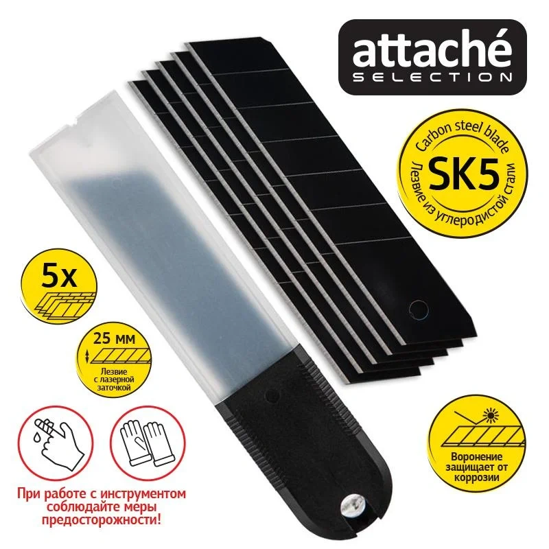 Лезвие для ножей запасное Attache Selection 25мм сегм.воронение,SK5, 5шт/уп